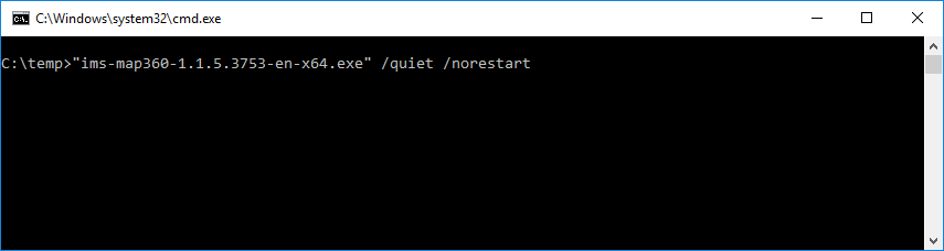 You can perform a silent or unattended installation of your MicroSurvey product, for mass-deployment within your organization without having to click through all the dialogs. Below is a screenshot showing how you can do this from a temp directory. Note that if the executable file has any spaces in the name that it should be contained in quotes: