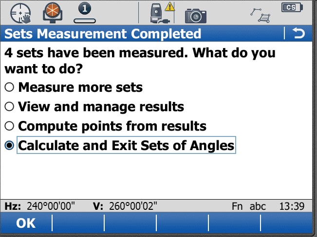 2. In the “Sets Measurement Completed” screen, select “View and manage results” and "OK"