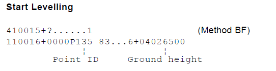 ?+......1 designates that this is a "Method 1" leveling loop in which the sequence of measurements is: Backsight Foresight. If you see ?+......2 it designates that the sequence of measurements is Method 2 is Backsight Foresight Foresight Backsight, which is typically used for high order leveling. Method 1 is typically used for first, second and third order leveling. The StarDNA converter needs to read which method was used in order to correctly interpret the measurements which will follow.