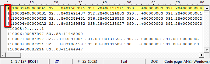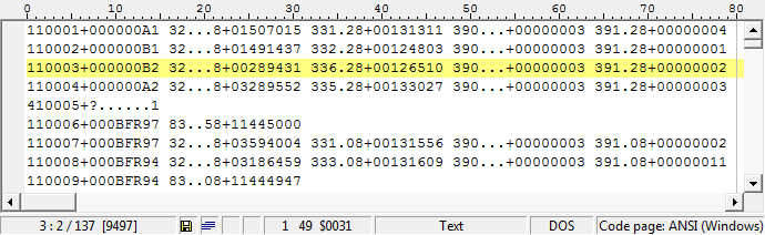 In the above example, 410015 designates the start of a leveling loop where 15 is the line number. The part of the record that appears as: